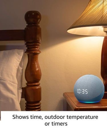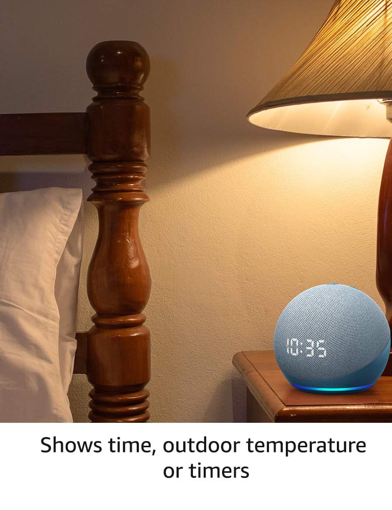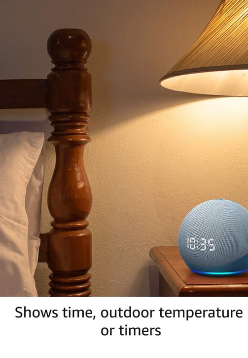 Amazon Echo Dot (4th Gen with clock | Next generation smart speaker with powerful bass, LED display and Alexa (White)